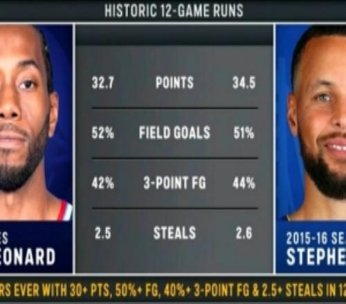 小卡近12场场均32.7分2.5断、投篮命中率52%、三分命中率42%比肩15-16赛季的库里 场均34.5分2.6断 命中率51%...